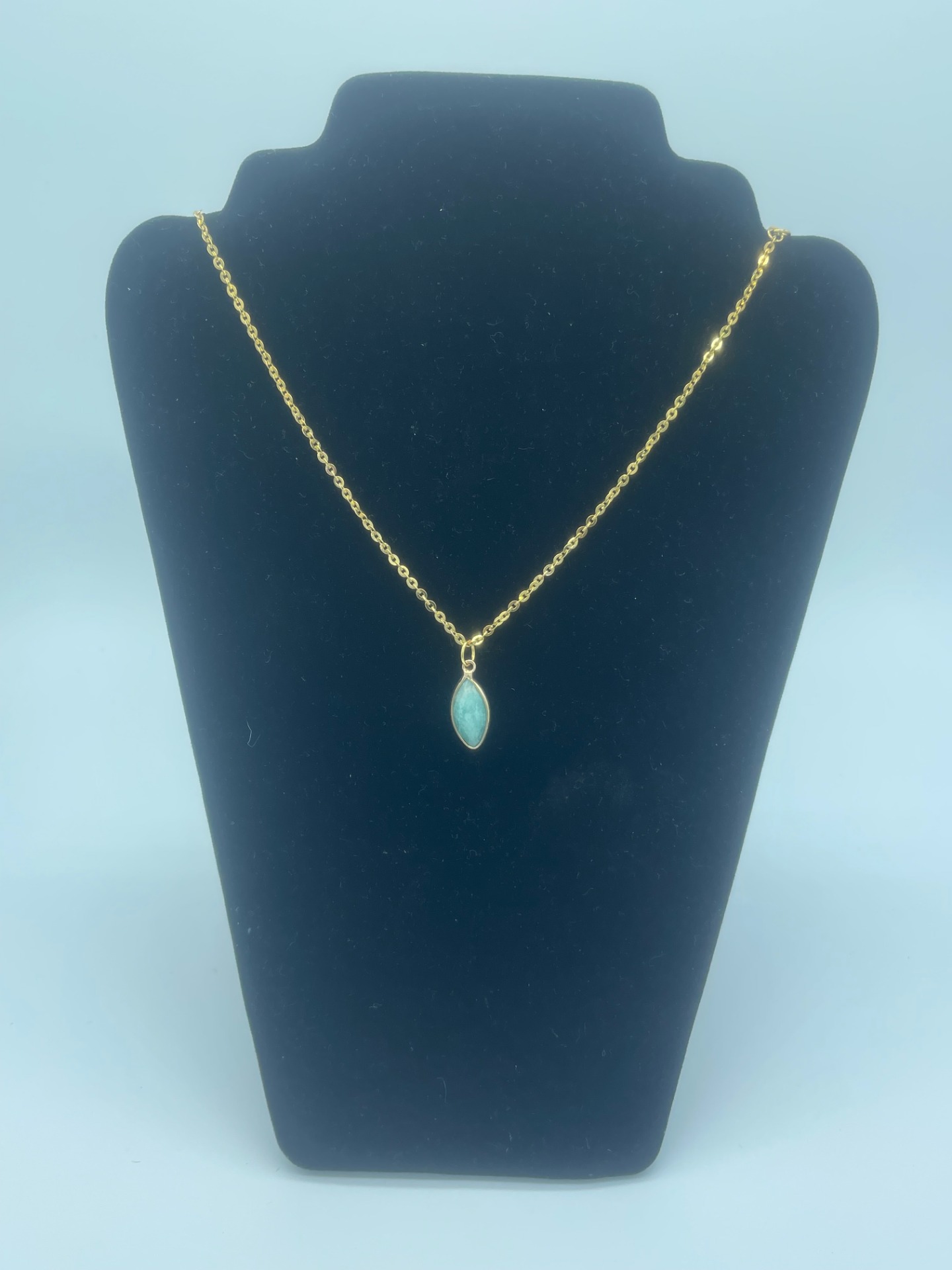 Pendentif Amazonite facetté couleur de la chaine Or en acier inoxydable